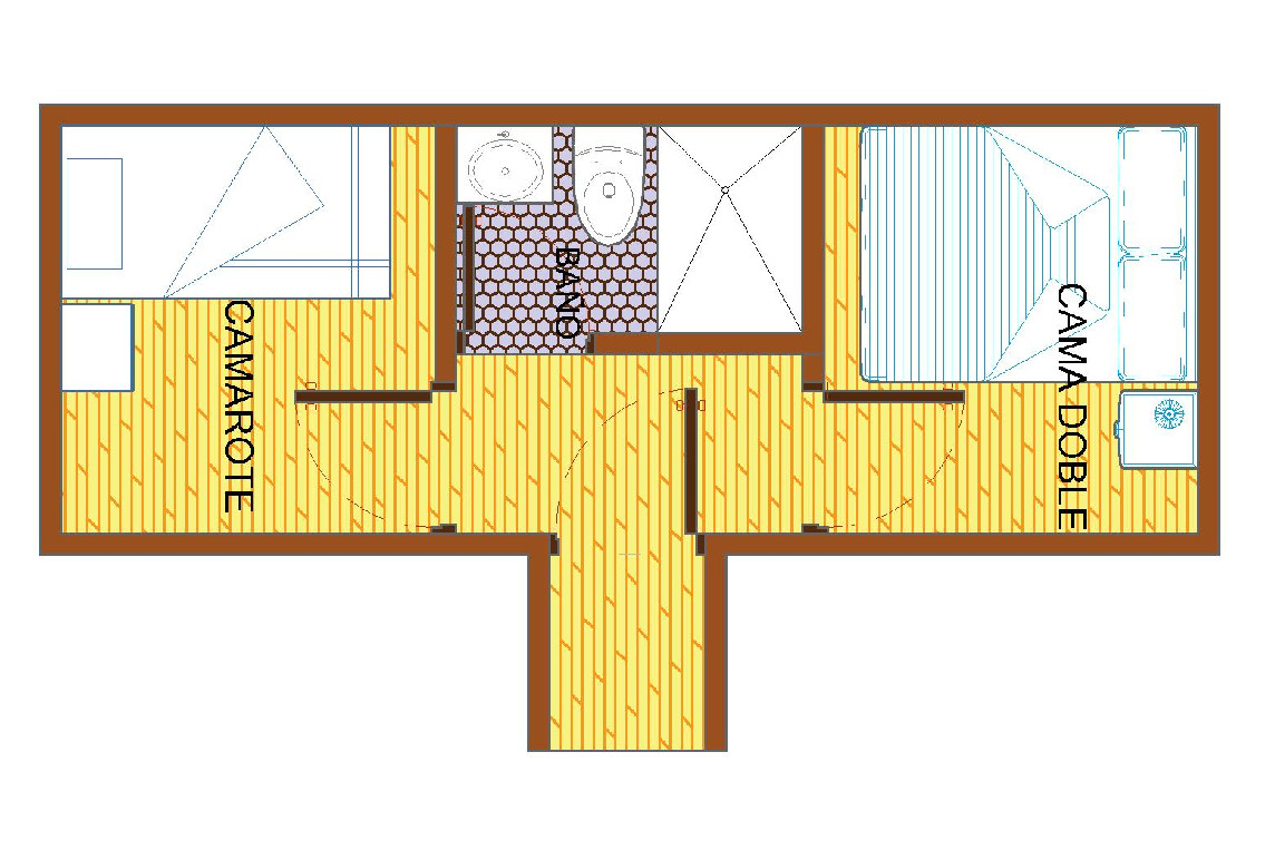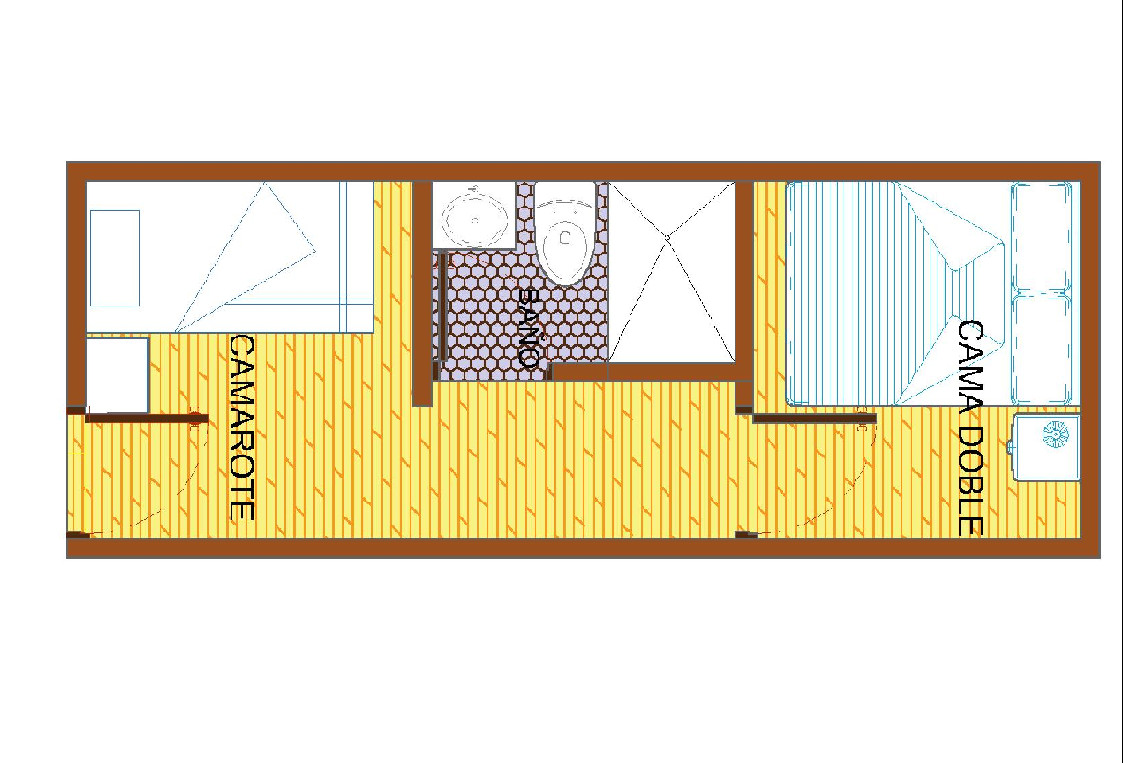 - Tipo de cama: (1) cama doble y (1) camarote